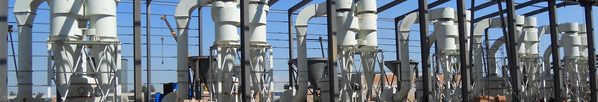大塊物料經(jīng)顎式破碎機(jī)破碎到所需粒度后,由提升機(jī)送至儲料斗,再由皮帶機(jī)將物料均勻定量連續(xù)地送入2臺MTW175歐版磨的主機(jī)磨室內(nèi)進(jìn)行研磨。粉磨后的物料被風(fēng)機(jī)氣流送入選粉機(jī)進(jìn)行分級,在選粉機(jī)葉輪的作用下,不符合細(xì)度要求的物料落入磨室內(nèi)重新碾磨,合格的物料則經(jīng)空氣斜槽進(jìn)入旋風(fēng)集粉器內(nèi),進(jìn)行分離收集,經(jīng)排料裝置排出即為成品粉體。
